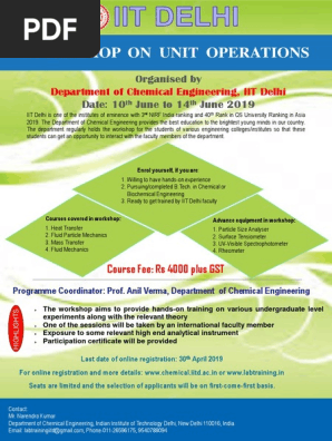 - Workshop On Unit Operations Department Of Chemical Engineering Iit Delhi Chemical Engineering Engineering Best Free Online Courses With Certificates 2020,